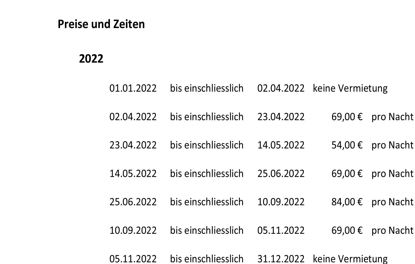 keine Vermietung
